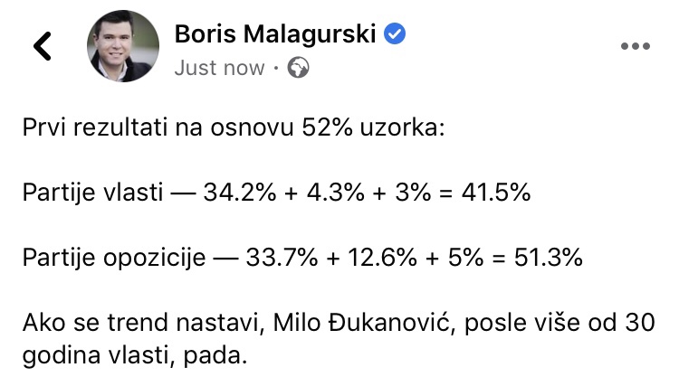 Narod u Crnoj Gori rekao je svoje. Prema prvim preliminarnim rezultatima režim Mila Đukanovića doživio je i konačan pad.