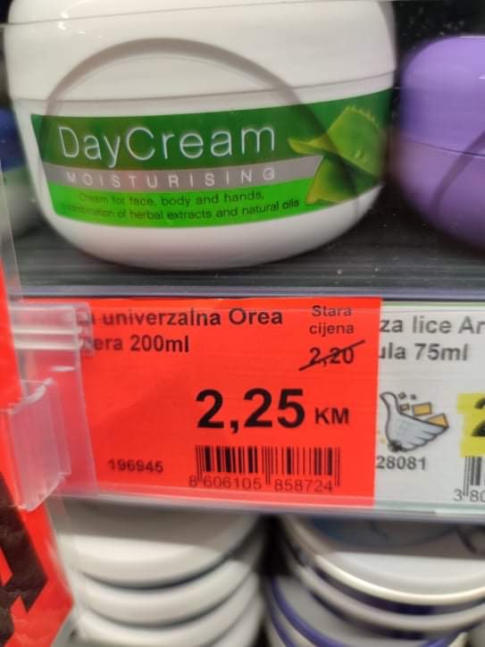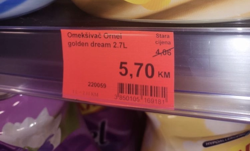Simbolično, crvenom bojom prikazano je “sniženje” u trebinjskom KORT marketu.