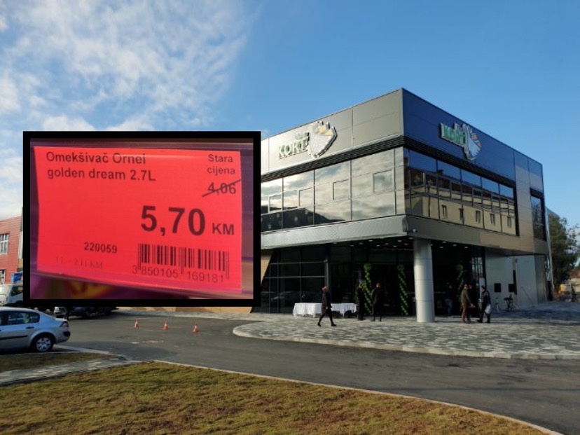 Simbolično, crvenom bojom prikazano je “sniženje” u trebinjskom KORT marketu.