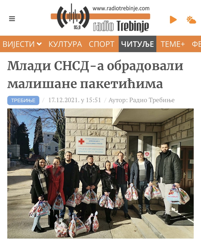 Nedavno je u Trebinju, na javnom glasilu izašao naslov “Mladi SNSD-a obradovali mališane paketićima”.