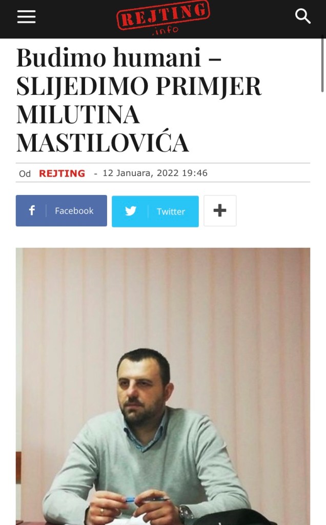 Da se Vlasi ne dosjete i da ne bude providno da gospodin Mastilović sam sebe hvali, trebinjski “dvorski” portal blizak SNSD-u iza kojeg stoji direktor trebinjske biblioteke Milosava Supić, inače njegova kuma, objavio je tekst pod naslovom – “Budimo humani – SLIJEDIMO PRIMJER MILUTINA MASTILOVIĆA”.