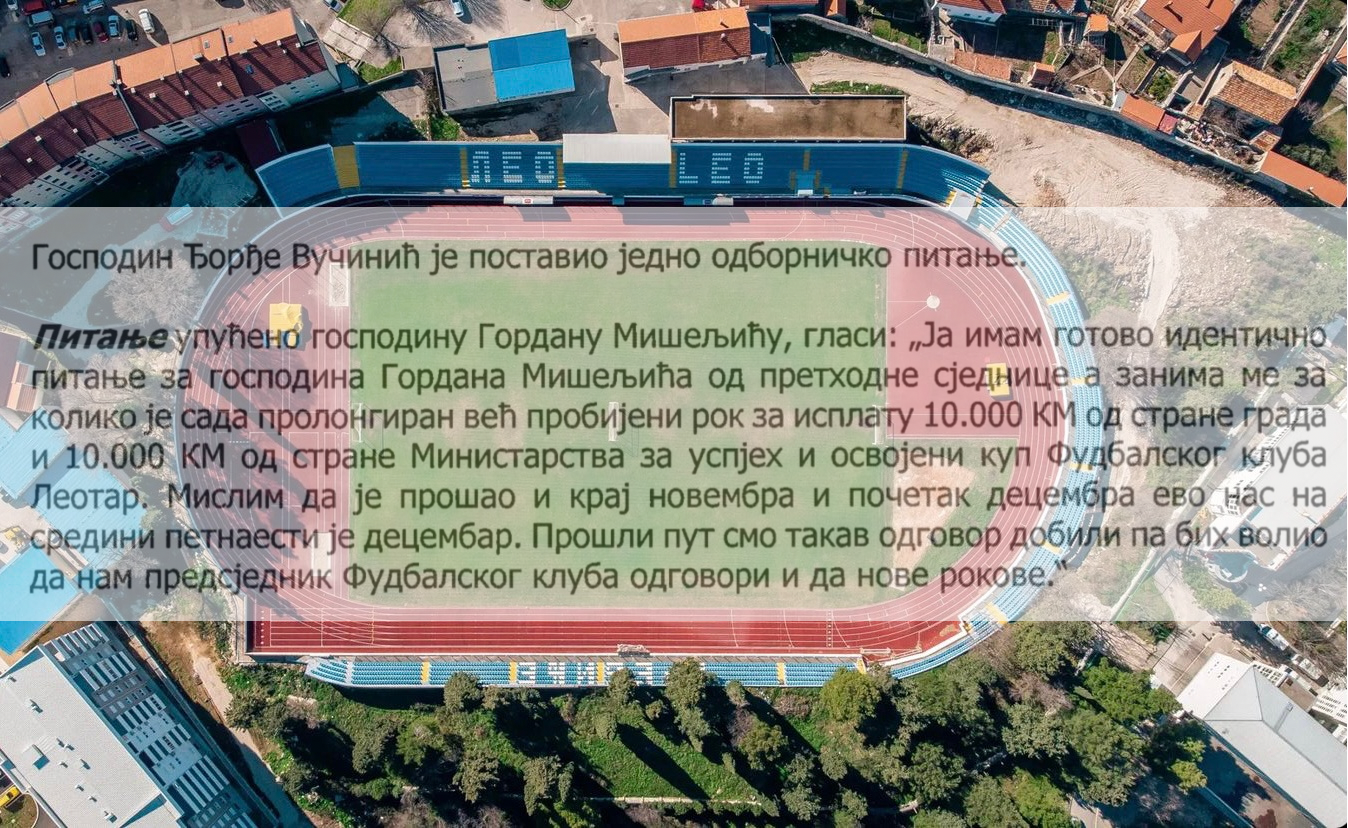 O tome smo govorili u više navrata, a postavljao sam i dva odbornička pitanja gospodinu Gordanu Mišeljiću koji je prvi put odgovorio da će krajem novembra ili najkasnije početkom decembra biti uplaćena sredstva, a kad sam ga podsjetio na probijeni rok, Mišeljić se drugog puta branio ćutanjem.