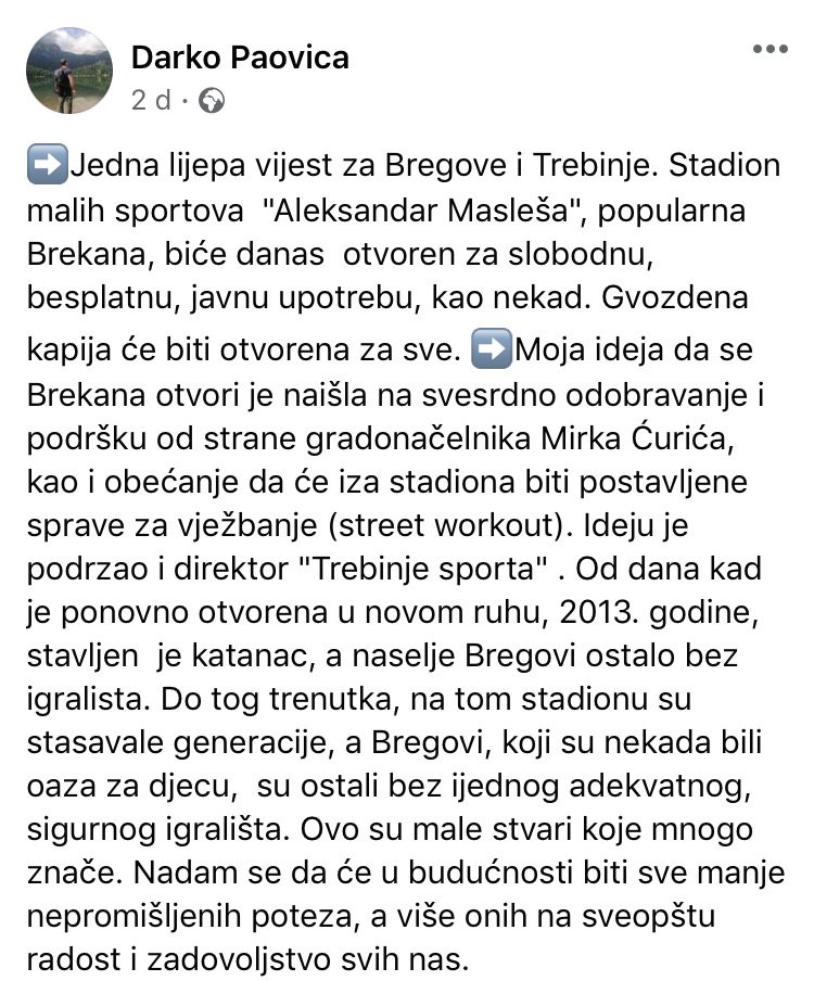 -Trenutno nisam upoznat, ali mi ćemo sazvati sve sjednice od omladinskog savjeta do studentskog parlamenta i unije studenata da vidimo kakav je njihov stav, a oni kad dođu i kažu: “Mi nismo za to”, onda u redu, mi ćemo to ispoštovati. Još uvijek nismo sazvali te sjednice, ali kad član porodice izađe i izjavi te stvari, mi studenti tu nema šta da tražimo. Iskreno, mi se borimo za interese studenata, za studentski standard, za bolje uslove studenata, ali opet ponavljam, ostajemo pri svojim stavovima da po nama nije trebala da se skine ta ploča.