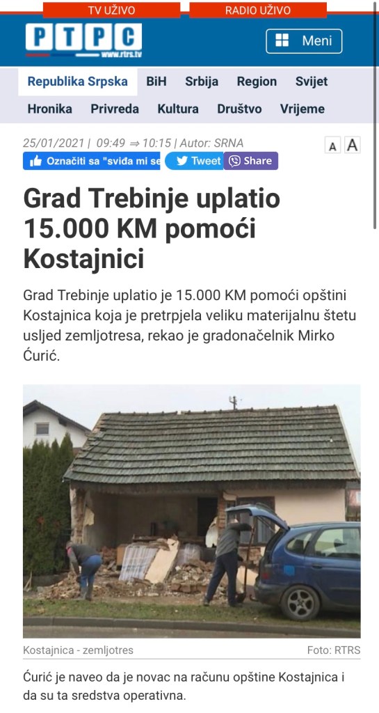 Kada su u pitanju jeftini politički poeni, iz budžeta Grada išao je novac za pomoć Opštini Kostajnica, međutim opštine Berkovići i Ljubinje (čija vlast nije u rukama SNSD-a) nisu dobili ništa iz budžeta Trebinja, a sam prijedlog o pomoći ovim, susjednim i hercegovačkim opštinama odbijen je da uđe u dnevni red na prethodnoj sjednici Skupštine Grada Trebinja.