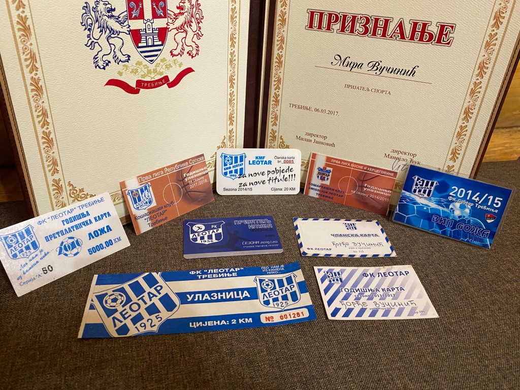 Nakon niskih udaraca ispod pojasa i gnusnih laži od strane Luke Petrovića na sjednici Skupštine grada Trebinja prije nekoliko dana, potrudio sam se radi javnosti da pronađem samo neke od ulaznica i članskih karti fudbalskog, košarkaškog, rukometnog i kluba malog fudbala “Leotar” iz raznih sezona.